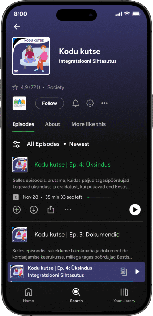 Iga aasta tuleb Eestisse tagasi umbkaudu 7000 eestlast. Neid inimesi nimetatakse tagasipöördujateks. Tagasi tuleku protsessi teeb hirmsaks ja keeruliseks üksinduse tunne. Tagasipöördujad tunnevad igatsust kogukonna järgi. Üksinduse leevendamiseks pakume tagasipöördujate jututuba ja Kodu Kutse podcasti.